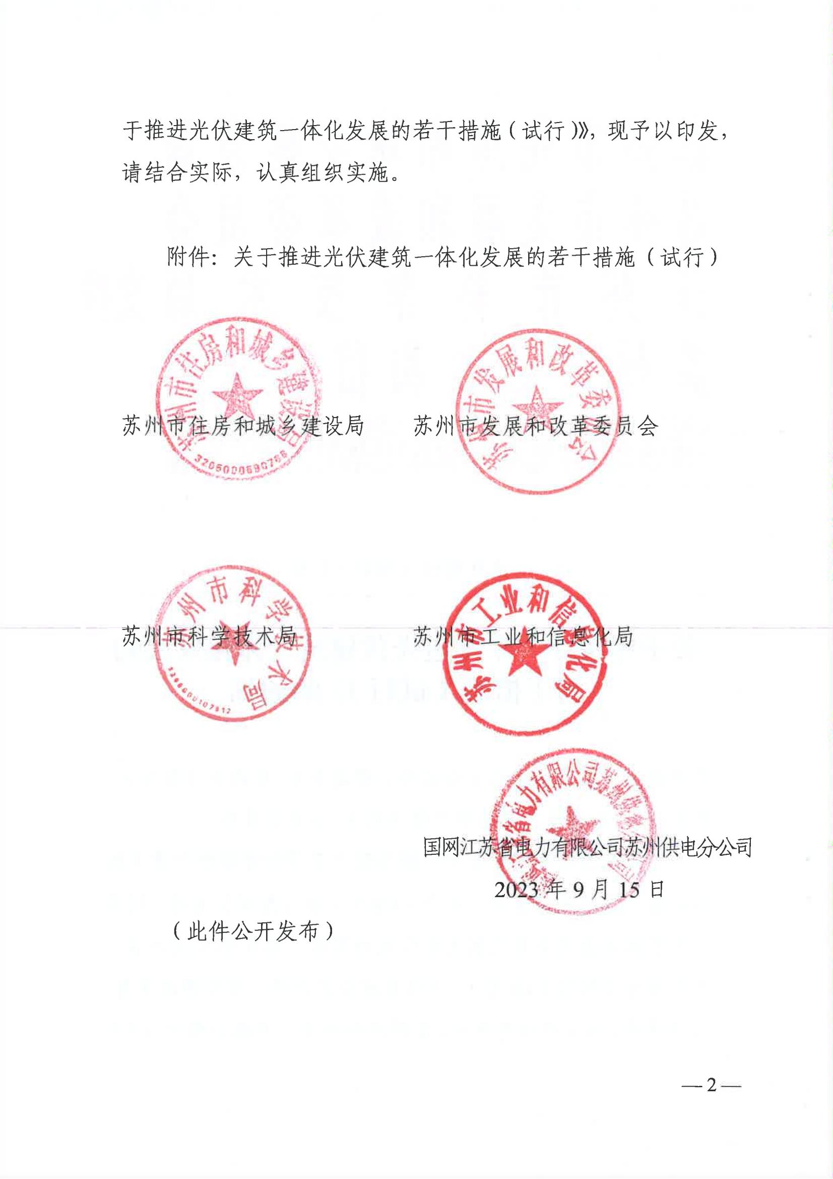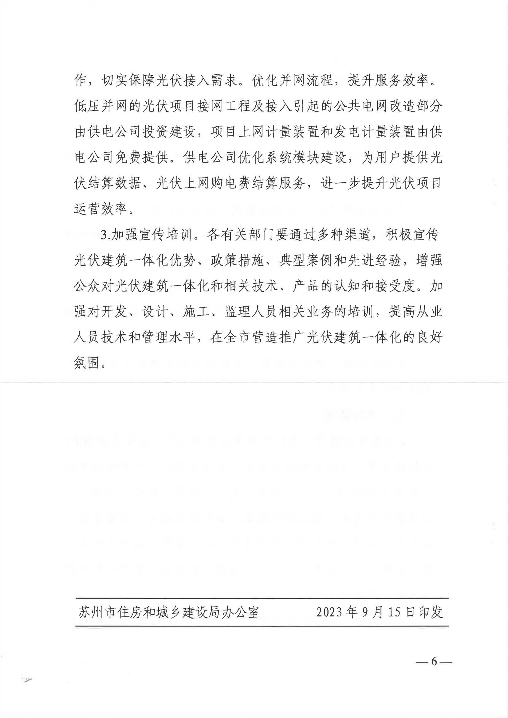 3月4日,蘇州市發(fā)展和改革委員會(huì )發(fā)布關(guān)于印發(fā)《關(guān)于推進(jìn)光伏建筑一體化發(fā)展的若干措施(試行)》的通知。該《措施》(試行)由蘇州市住房和城鄉建設局、蘇州市發(fā)展和改革委員會(huì )、蘇州市科學(xué)技術(shù)局、蘇州市工業(yè)和信息化局、國網(wǎng)江蘇省電力有限公司蘇州供電分公司等五部門(mén)聯(lián)合下發(fā)。文件指出,到2025年底,蘇州形成系統的光伏建筑一體化扶持政策和技術(shù)體系,打造一批光伏建筑一體化(BIPV)示范項目。實(shí)現光伏建筑一體化向標準化、規?;?、系列化方向發(fā)展。