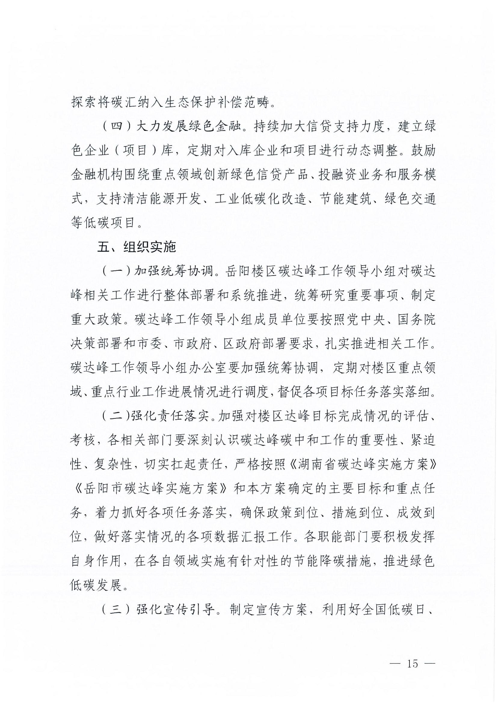 3月20日,湖南岳陽(yáng)市岳陽(yáng)樓區發(fā)展和改革局發(fā)布關(guān)于印發(fā)岳陽(yáng)市岳陽(yáng)樓區碳達峰實(shí)施方案的通知。通知指出,“十四五”期間,全區產(chǎn)業(yè)結構和能源結構明顯優(yōu)化,工業(yè)企業(yè)用能效率穩步提升,能源轉型成效初顯,煤炭消費總量得到合理控制,光伏等新能源裝機規模大幅提高,能源消費強度與碳排放強度進(jìn)一步下降。到2025年,單位地區生產(chǎn)總值能耗下降率、單位地區生產(chǎn)總值二氧化碳排放下降率確保完成市下達目標,非化石能源消費比重提高到20%,光伏發(fā)電裝機總規模達到2萬(wàn)千瓦,森林覆蓋率穩定保持在13.8%,交通、建筑等重點(diǎn)領(lǐng)域碳強度持續下降。