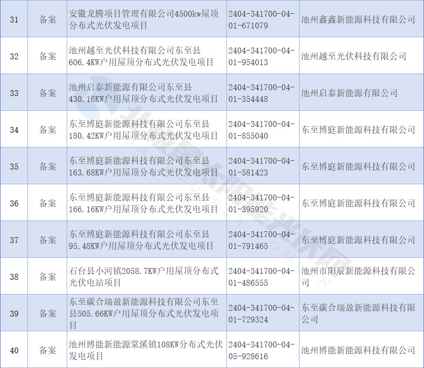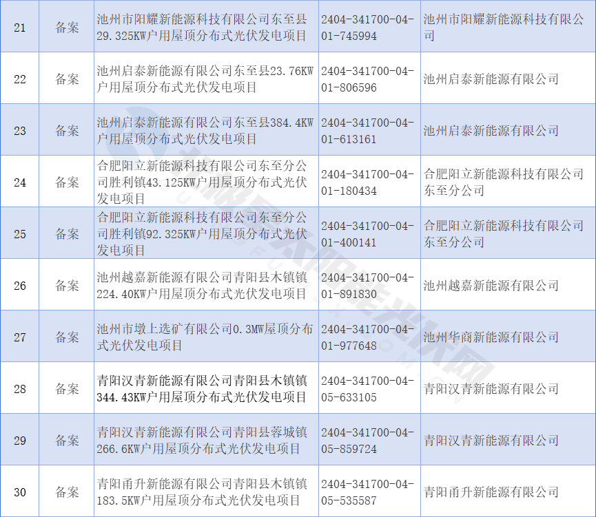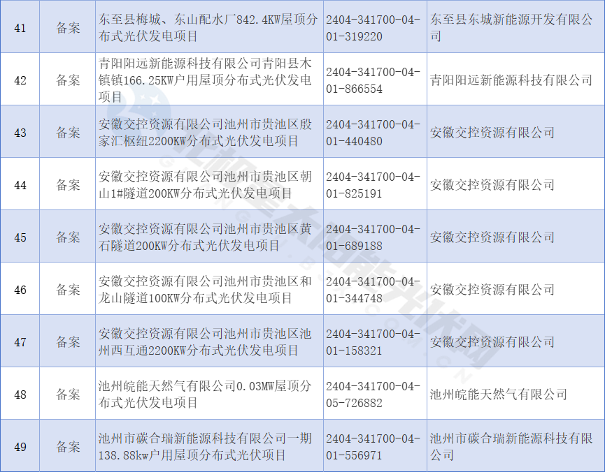 近日,安徽池州市發(fā)展和改革委員會(huì )公布2024年4月備案項目,清單包括49個(gè)屋頂分布式光伏發(fā)電項目。