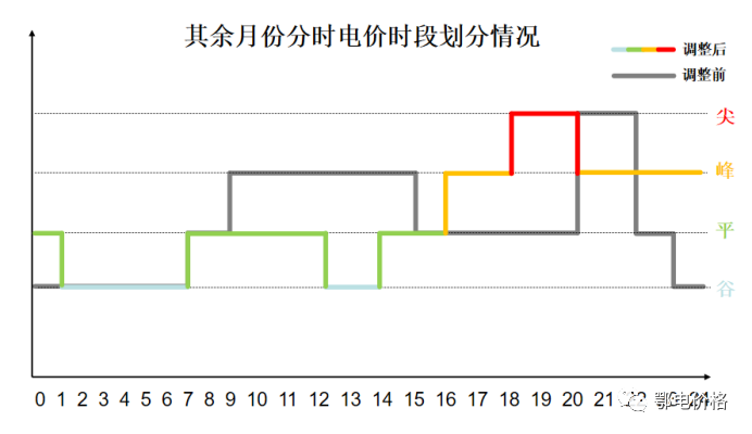 不變之三:分時(shí)電價(jià)浮動(dòng)系數維持不變。平常月份尖峰、高峰、平段、谷段電價(jià)比為1.8:1.49:1:0.48。夏季、冬季用電高峰月份(夏季7月、8月,冬季12月、1月),用電尖峰時(shí)段電價(jià)浮動(dòng)比例由1.8調整為2,低谷時(shí)段電價(jià)浮動(dòng)比例由0.48調整為0.45。