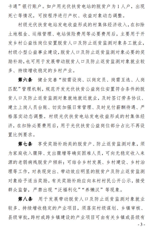 安徽省合肥市長(cháng)豐縣人民政府正式印發(fā)《長(cháng)豐縣光伏扶貧電站收益分配管理實(shí)施細則》,文件明確所指光伏扶貧電站包括戶(hù)用光伏扶貧電站、村級光伏扶貧電站。該辦法適用于長(cháng)豐縣已納入國家可再生能源電價(jià)附加資金補助(光伏扶貧)第一、二、三批次目錄和第四批納入國家規模范圍的戶(hù)用、村級光伏扶貧電站。