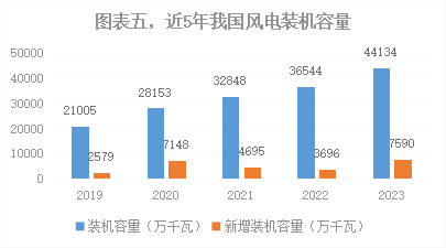 在“雙碳目標”和全面推進(jìn)美麗中國建設的大背景下,風(fēng)力發(fā)電業(yè)已成為除光伏發(fā)電外我國能源轉型的最重要的載體之一。截止到2023年12月31日,我國風(fēng)電裝機規模達到4.4134億千瓦,占我國電力總裝機的15%,其中陸上風(fēng)電4.434億千瓦,海上風(fēng)電3700萬(wàn)千瓦,首次突破了4億千瓦大關(guān),稍高于水電裝機規模,排名第3位,已連續14年穩居世界第一。全年風(fēng)電發(fā)電量8091億千瓦時(shí),同比增長(cháng)12.26%,占我國當年發(fā)電問(wèn)量的9.08%,也排在第3位。2023年風(fēng)電新增裝機容量達到7590萬(wàn)千瓦,占當年新增裝機的21%,同比增長(cháng)近一倍,其中陸上風(fēng)電6941萬(wàn)千瓦,比上一年同比增長(cháng)112%;海上風(fēng)電649萬(wàn)千瓦,比上一年增長(cháng)25.85%。需要說(shuō)明的是,海上風(fēng)電在2021年新增裝機達到史無(wú)前例的1691萬(wàn)千瓦后,呈現出逐年下滑態(tài)勢,2022年新增裝機為515.7萬(wàn)千瓦,2023年呈現出筑底回升態(tài)勢,其中一個(gè)重要原因是伴隨著(zhù)平價(jià)時(shí)代的到來(lái),在現階段設備、技術(shù)、施工、運維等成本沒(méi)有實(shí)現革命性突破的情況下,海上風(fēng)電項目投資收益難以滿(mǎn)足項目決策的要求。