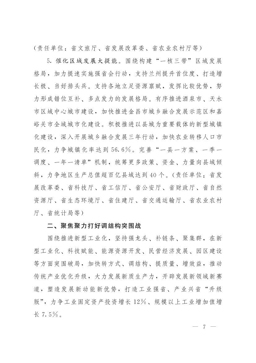 3月19日,甘肅省人民政府發(fā)布《甘肅省人民政府辦公廳關(guān)于印發(fā)全面貫徹落實(shí)省委經(jīng)濟工作會(huì )議和省兩會(huì )精神聚焦聚力打好高質(zhì)量發(fā)展“六場(chǎng)戰役”行動(dòng)方案的通知》。