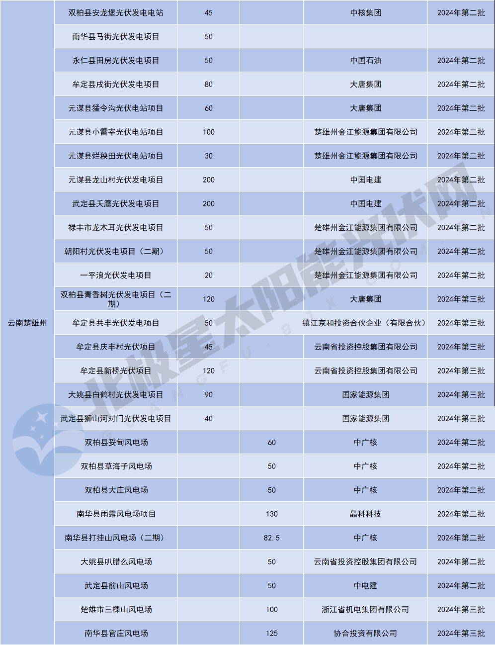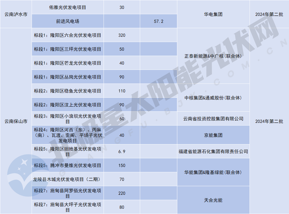 具體到業(yè)主來(lái)看,在已公布項目第一候選/中標企業(yè)中,中國電建中標規模最大,達到700MW;緊隨其后的是國家電投,所獲規模達695MW;天合光能、中核集團、國家能源集團、正泰新能源&中廣核(聯(lián)合體)所獲規模均達320MW及以上。此外,云投集團、華電、大唐、楚雄州金江能源集團有限公司、中廣核、華能集團&隆基綠能(聯(lián)合體)等企業(yè)均有所獲。