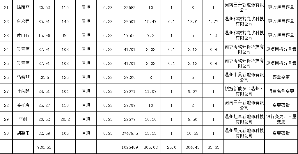 一、本批次共有居民家庭屋頂分布式光伏發(fā)電項目(變更)30個(gè),總裝機容量936.65kWp,年平均發(fā)電量1026409kWh。項目情況詳見(jiàn)附表。
